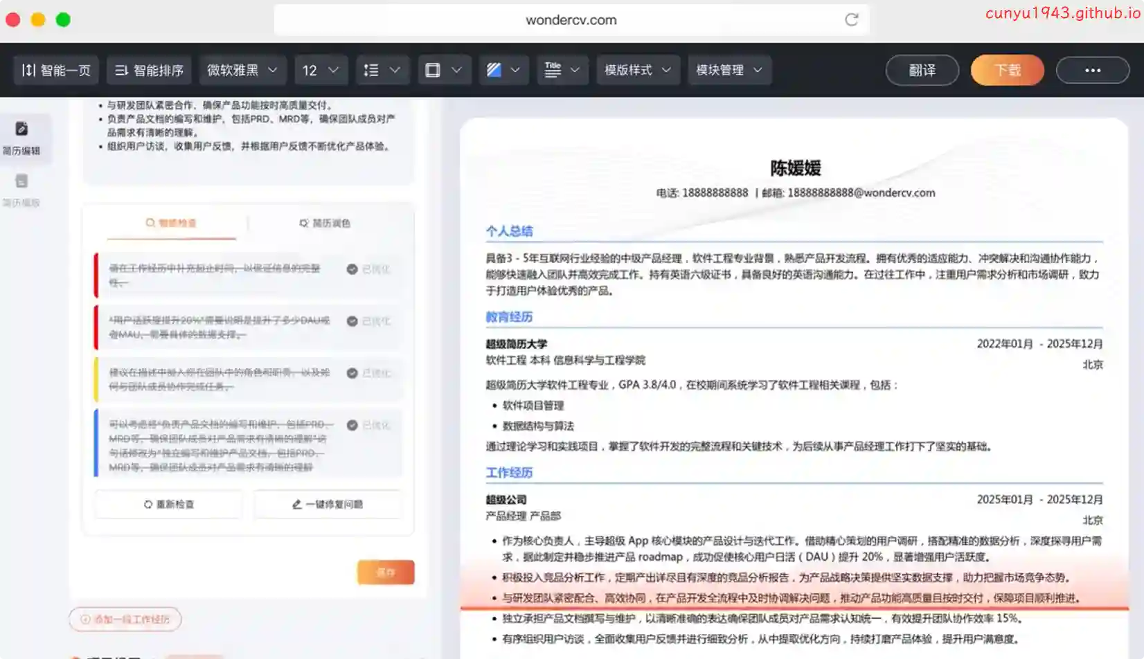 提供各行业中英文简历模板免费下载和真人大牛简历范文参考,是 HR 推荐的智能简历制作工具。还有专业简历案例库和智能简历优化建议,以及大量简历制作攻略和职场攻略。是免费制作名企、外企、500 强等高薪职位求职简历和留学简历必备的精英简历神器。