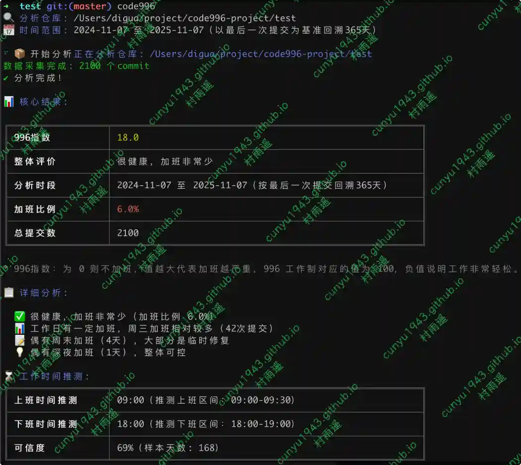 一个分析工具,它可以统计 Git 项目的 commit 时间分布,进而推导出项目的编码工作强度。它可以帮助你了解新团队工作的时间模式,识别潜在的加班文化。