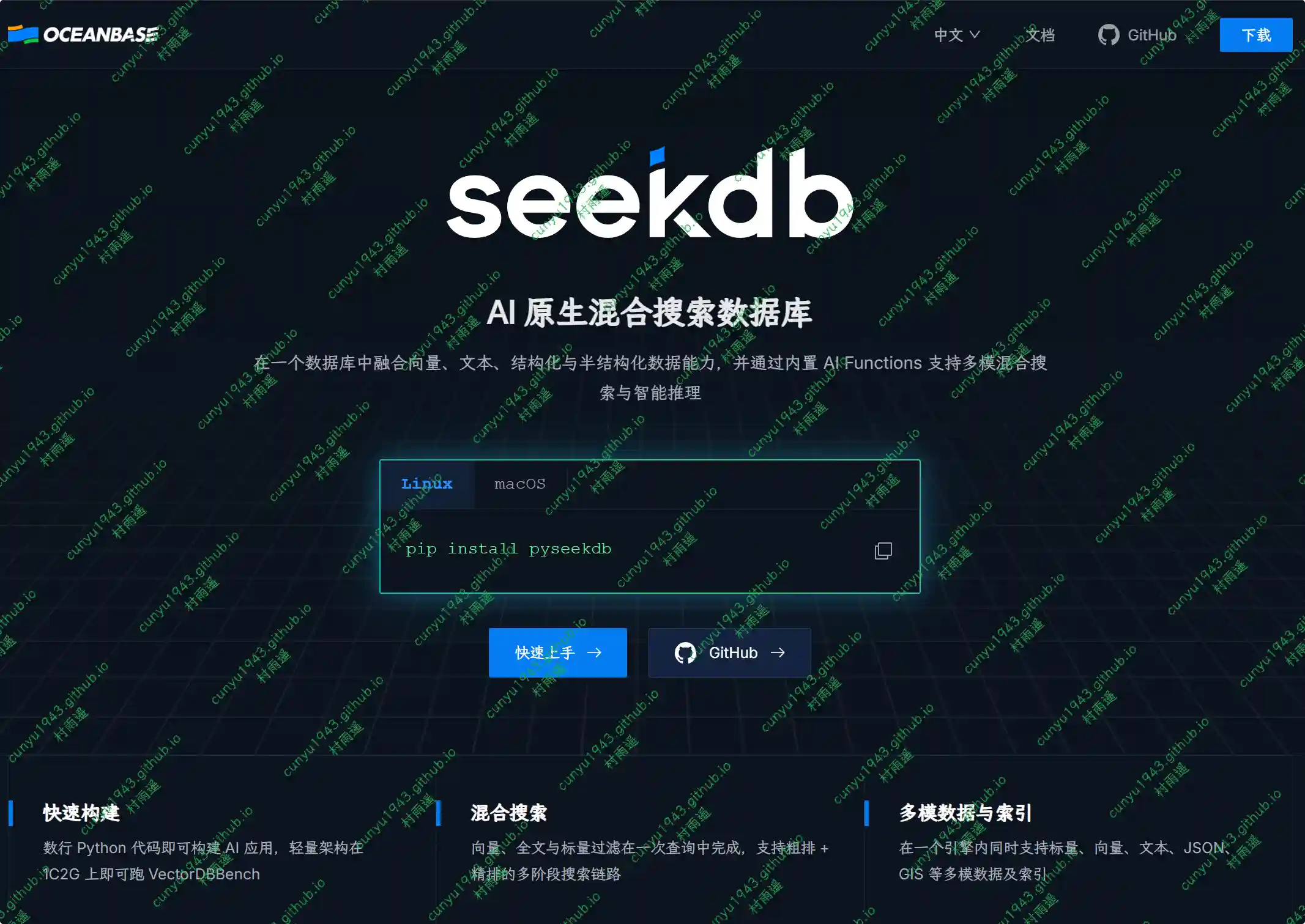 OceanBase 打造的一款开发者友好的 AI 原生数据库产品,专注于为 AI 应用提供高效的混合搜索能力。它支持向量、文本、结构化与半结构化数据的统一存储与检索,并通过内置 AI Functions 支持数据嵌入、重排与库内实时推理。seekdb 在继承 OceanBase 核心引擎高性能优势与 MySQL 全面兼容特性的基础上,通过深度优化数据搜索架构,为开发者提供更符合 AI 应用数据处理需求的解决方案。