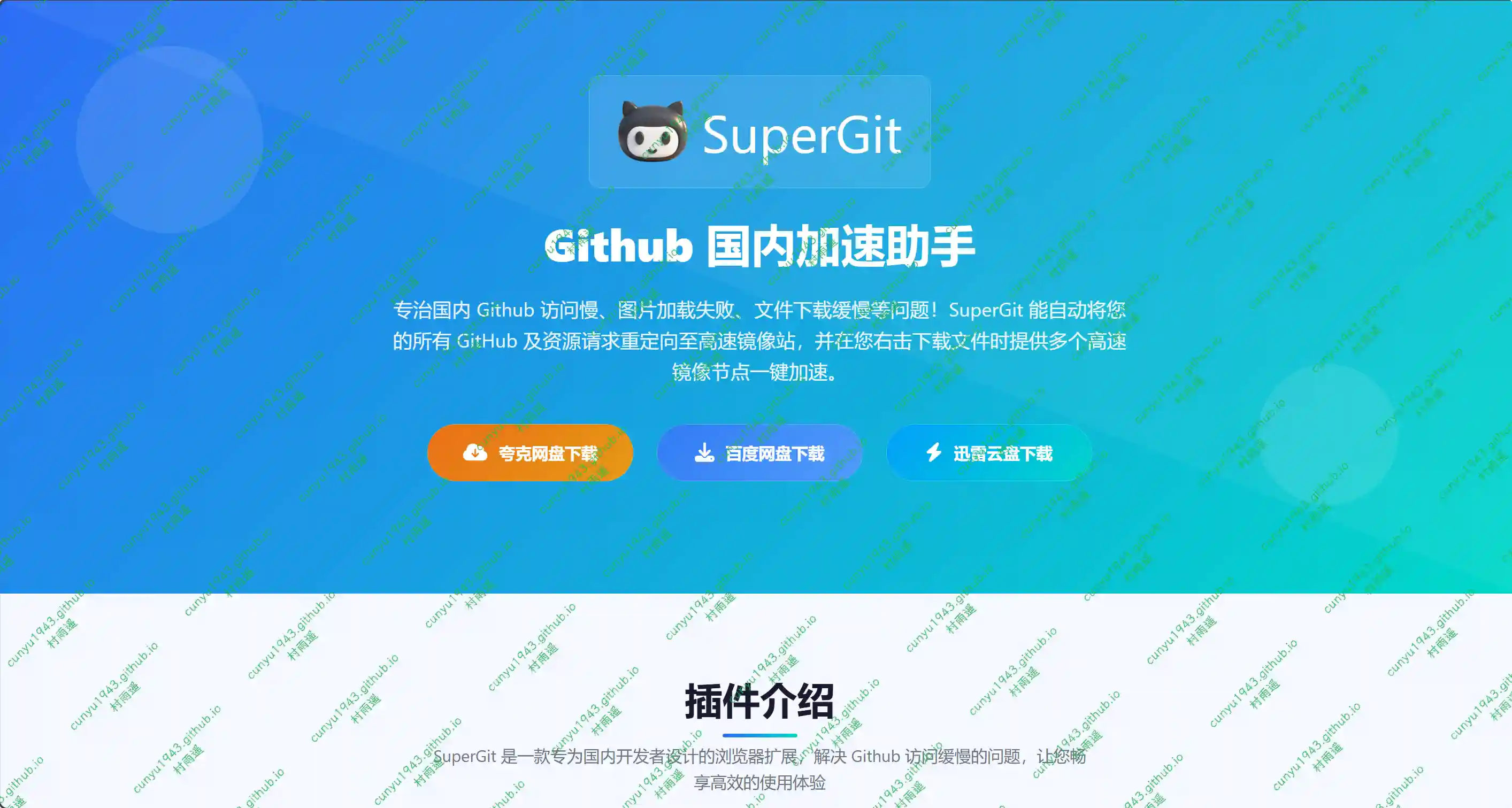 Github 国内加速助手,专治国内 Github 访问慢、图片加载失败、文件下载缓慢等问题!SuperGit 能自动将您的所有 GitHub 及资源请求重定向至高速镜像站,并在您右击下载文件时提供多个高速镜像节点一键加速。