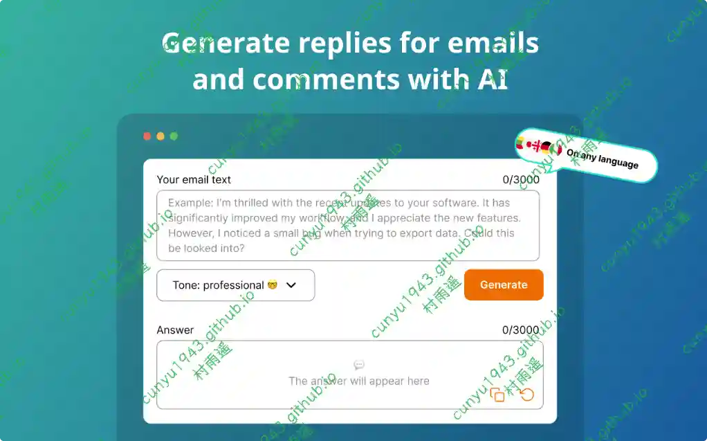 使用 AI 回复生成器自动化回复。立即创建 AI 生成的消息、电子邮件和对用户问题的回答。