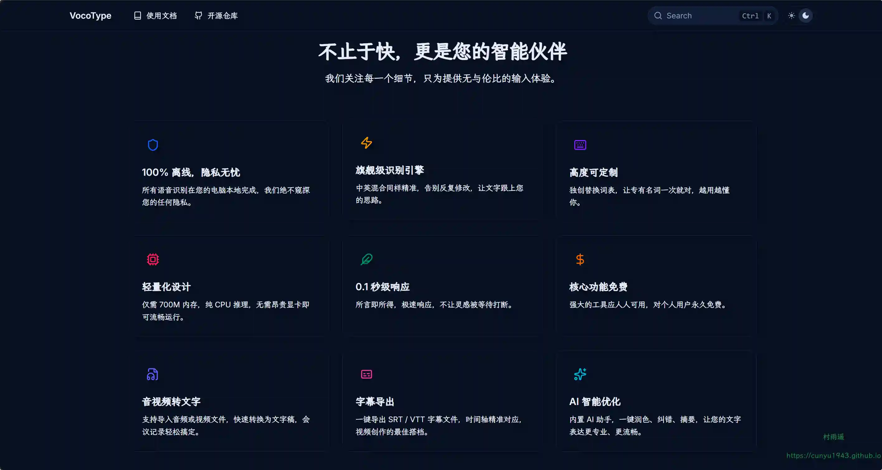 一款专为注重隐私和效率的专业人士打造的离线语音输入法。100% 本地运行,0.1 秒极速响应,支持中英混合精准识别。提供音视频转录、SRT 字幕导出、AI 润色和自定义词典功能。完全免费开源,您的声音数据绝不上传云端,是 Windows 和 macOS 用户的隐私安全首选工具。
