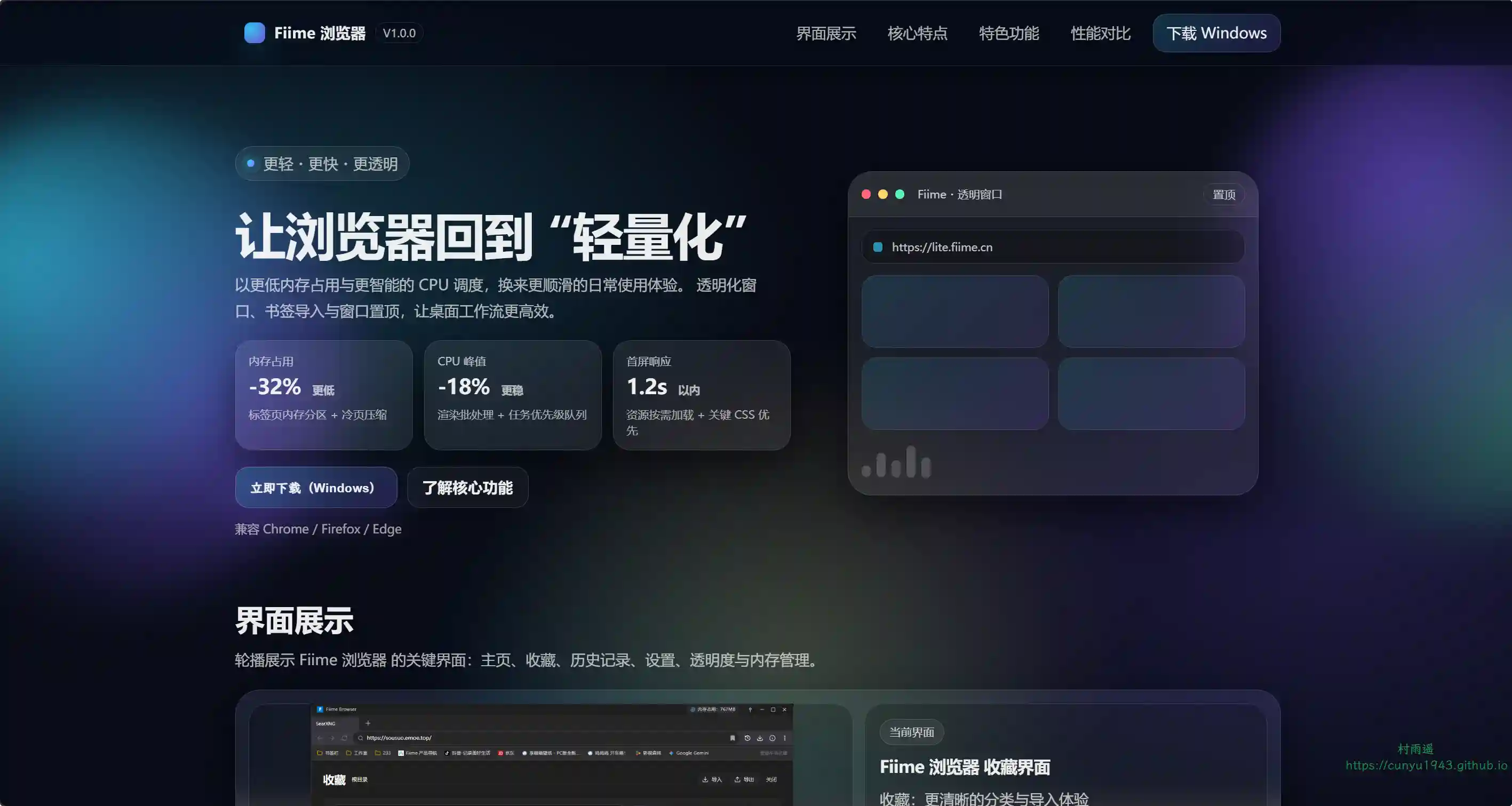 更低内存占用、更优 CPU 调度、更顺滑的透明化窗口体验。支持 Chrome 书签导入、窗口置顶等桌面级能力。