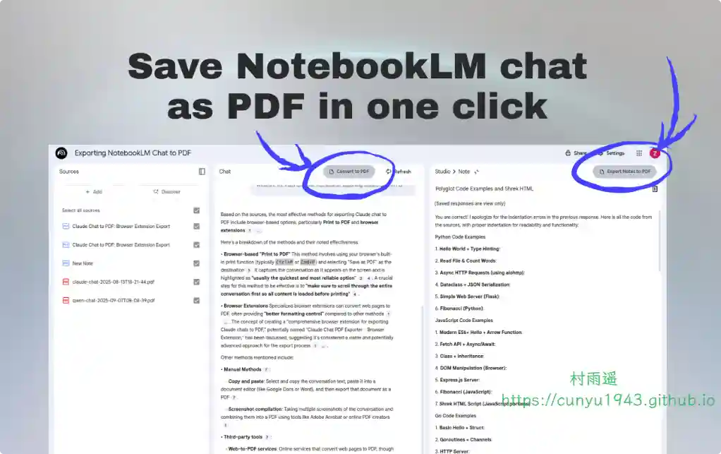 使用 NotebookLM 聊天,并将将您的 NotebookLM AI 对话转换为格式优雅的 PDF 文档保存。