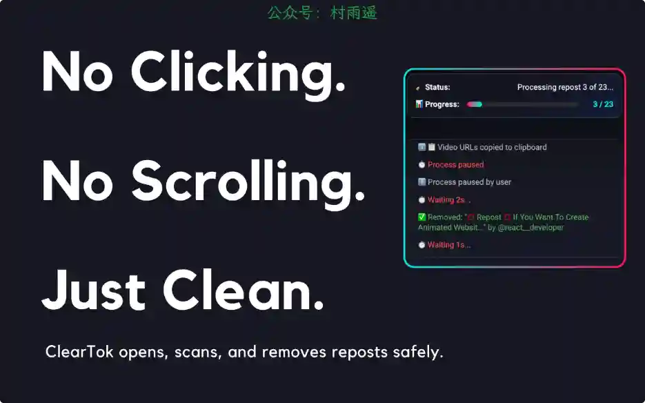 一键清理你在 TikTok 的所有转发,无需滚动、无需逐个点击。