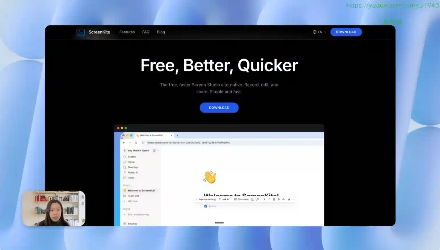 为交付人群设计的原生 macOS 屏幕录制工具。支持自动缩放,内置编辑器,金属加速导出,免费使用无订阅。