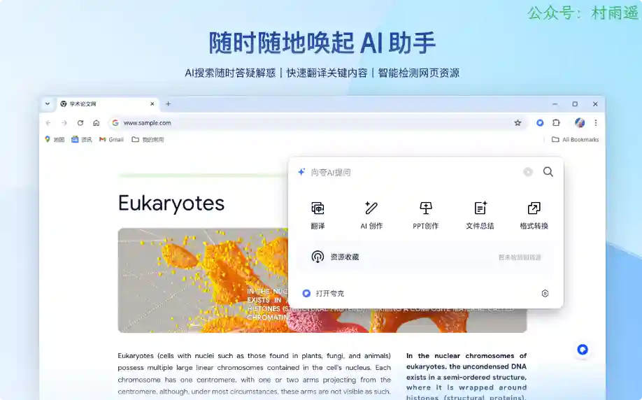 在浏览器随时唤起夸克 AI,AI 搜索智能回答,还能让 AI 帮你解读、润色、翻译,高效完成工作。