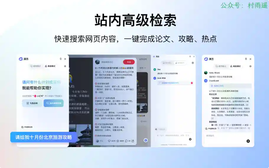 你的 AI 全能助手,通过划线工具、多链接总结、站内高级检索、写作助手等,清言插件助您轻松应对各种网络浏览场景。