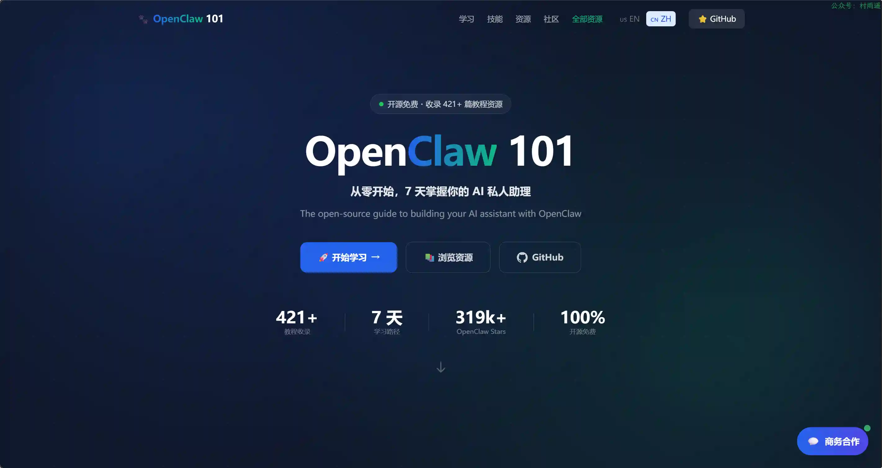 从零开始,7 天掌握你的 AI 私人助理,截止目前已经收录了 420+ 教程资源。